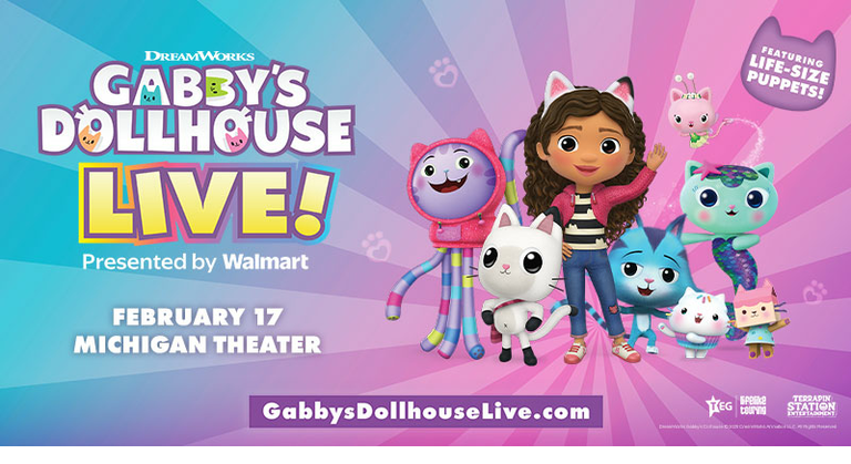 Gabby’s Dollhouse LIVE! Tuesday, February 17, 2026 Michigan Theater Get tickets here: https://www.ticketmaster.com/gabbys-dollhouse-live-presented-by-walmart-ann-arbor-michigan-02-17-2026/event/08006379758C2CDB